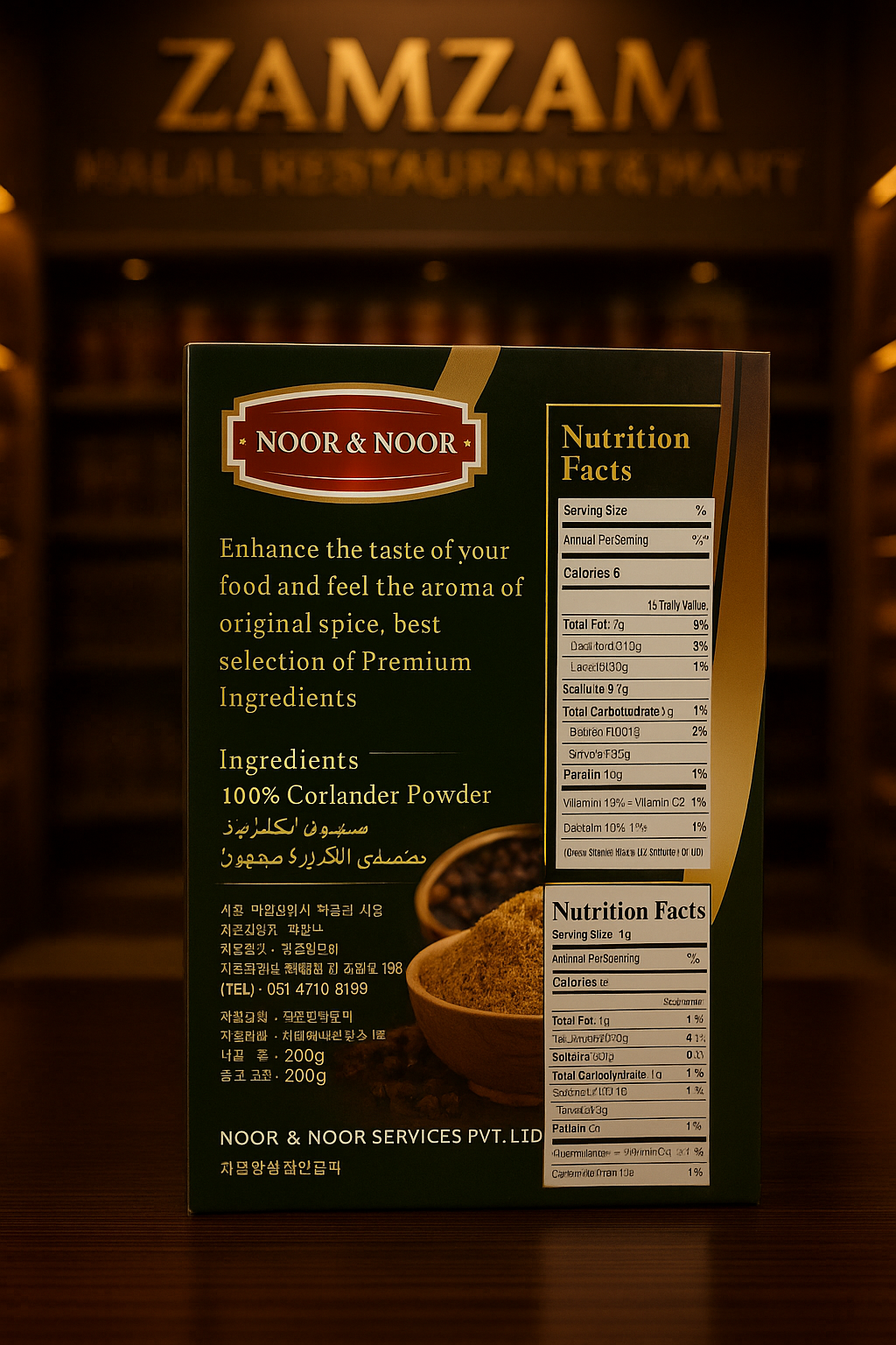 Noor & Noor Coriander Powder is made from the finest handpicked coriander seeds, carefully ground to preserve freshness, aroma, and natural oils. It adds a rich, earthy flavor with a hint of citrus, making it a staple spice in every kitchen.